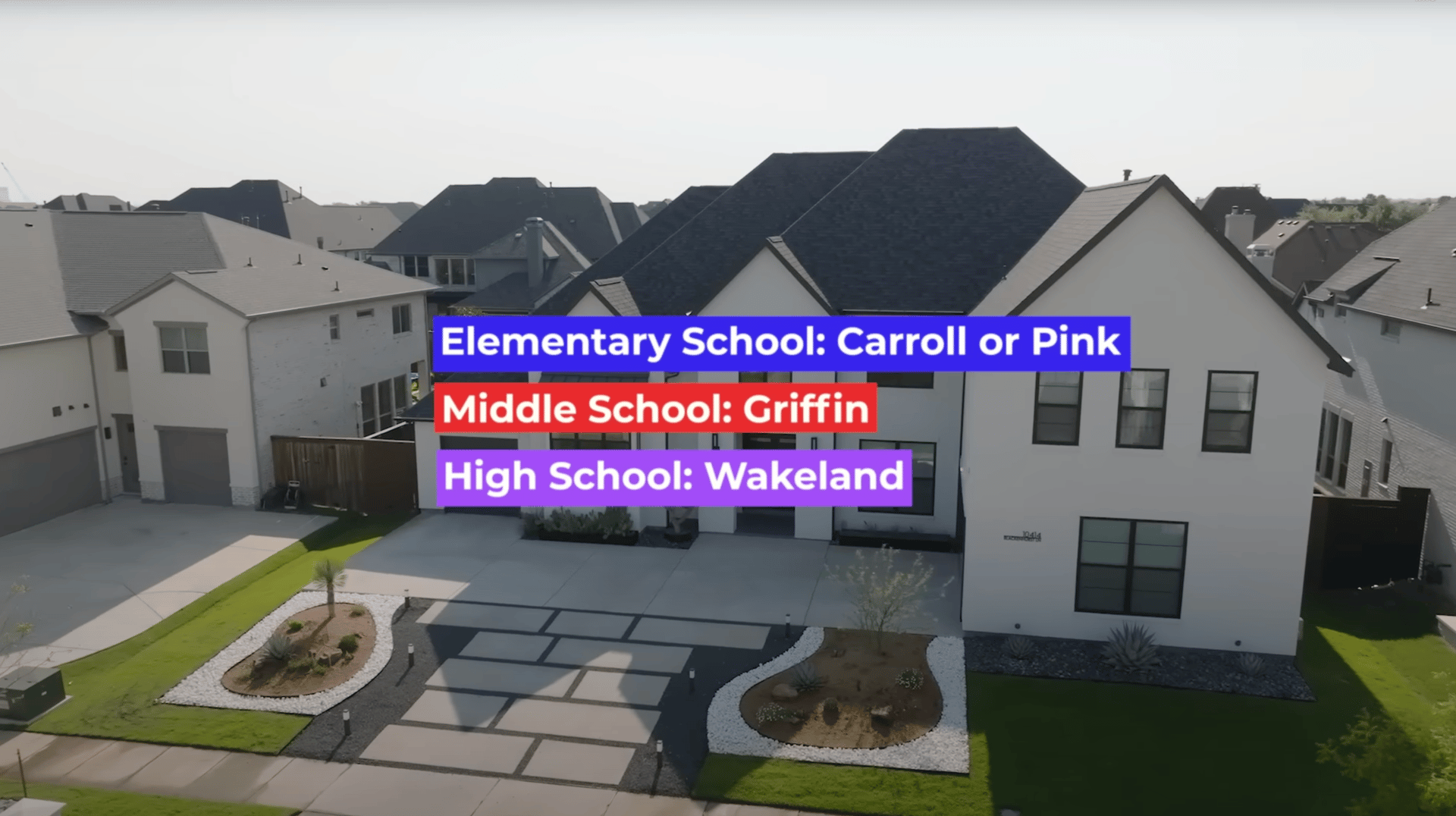 Frisco ISD — Carroll or Pink Elementary, Griffin Middle School, and Wakeland High School.
