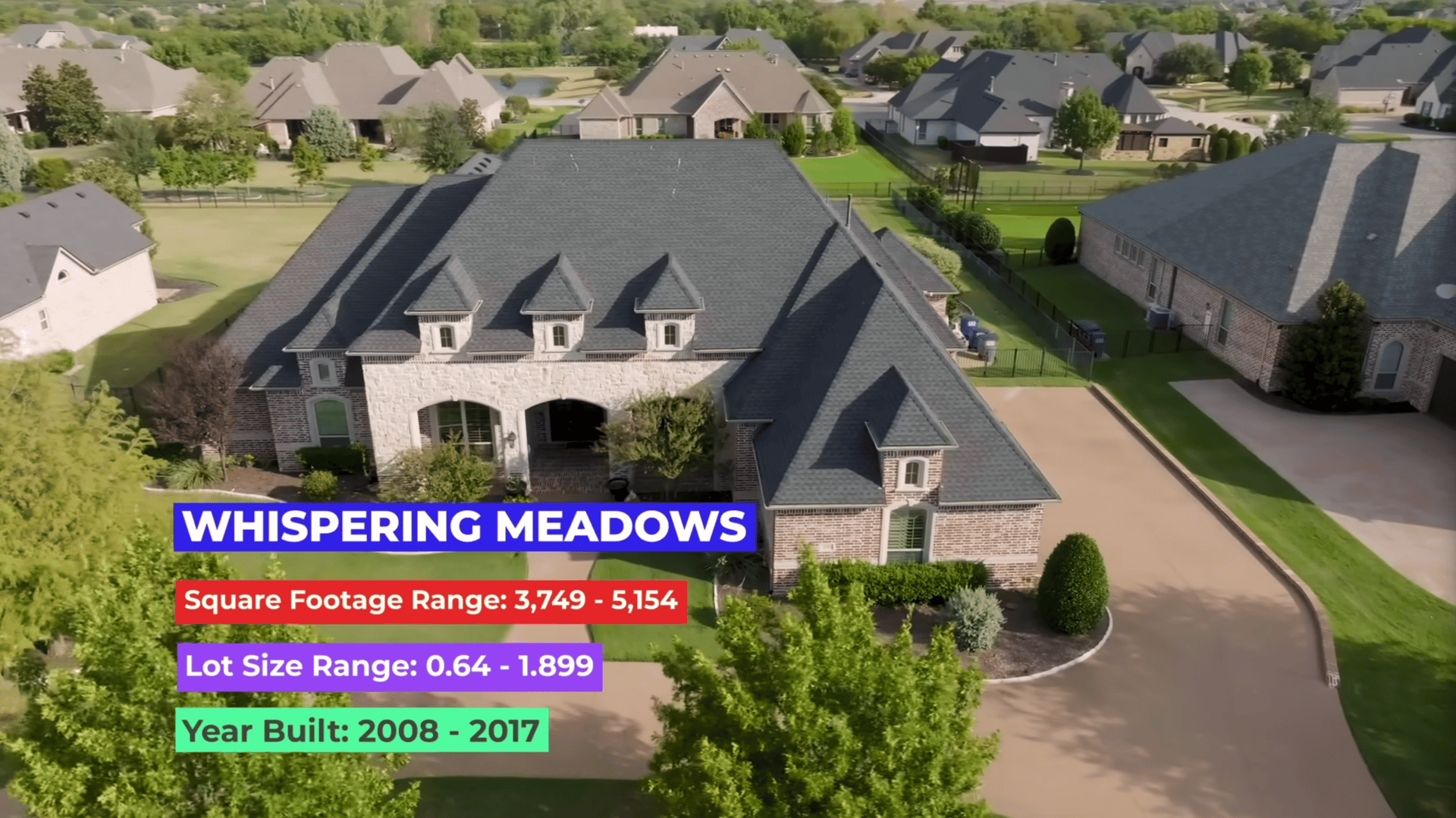 Whispering Meadows sits in Prosper, TX 75078, within Collin County, offering a peaceful setting while still being accessible to major North Texas destinations. Homes here typically sell in the $1.2M-$1.6M+ range, reflecting the quality of construction, lot sizes, and amenities.