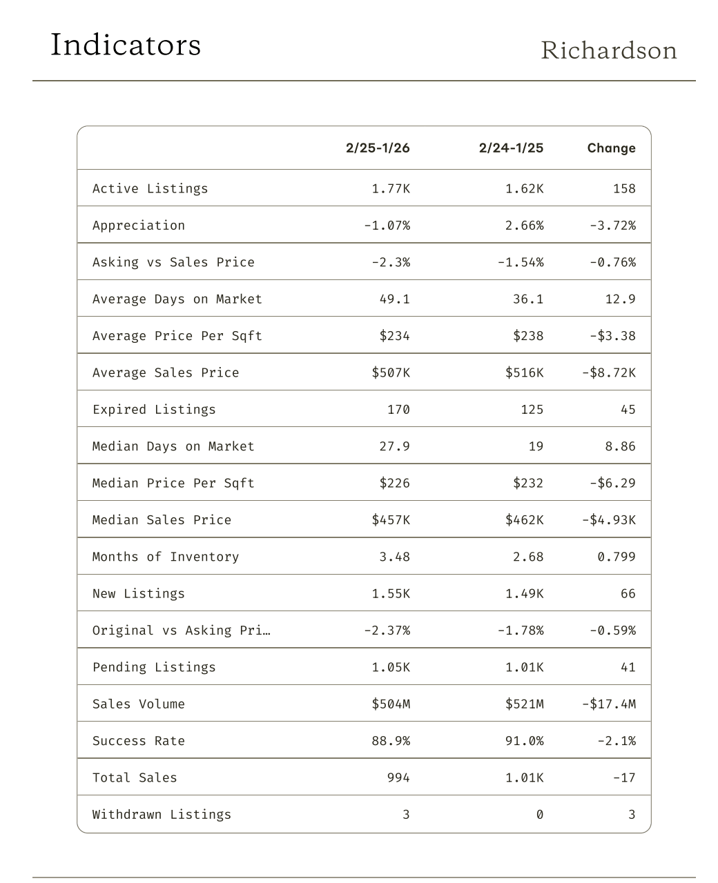 YEAR OVER YEAR REAL ESTATE DATA